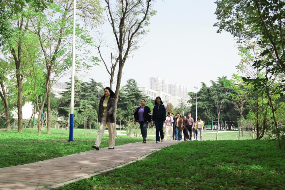 教职工们在健步走活动中,一边舒展身心,一边欣赏校园的美丽景致。教职工们在这如画的校园里,不仅锻炼了身体,更放松了心情,享受着运动带来的愉悦与满足。他们的身影构成了校园中流动的靓丽风景。